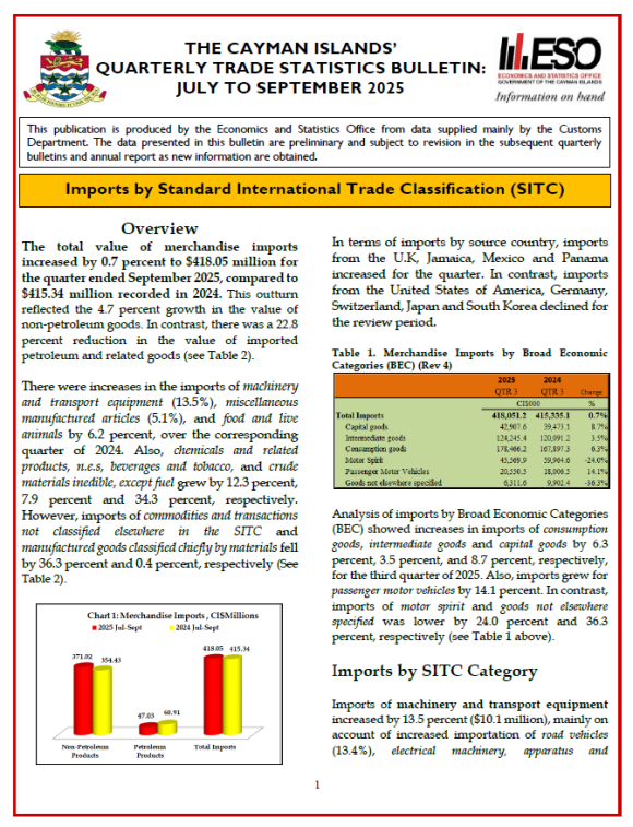 More information on “The Cayman Islands’ Quarterly Trade Statistics Bulletin: July to September 2025” is available at www.eso.ky.